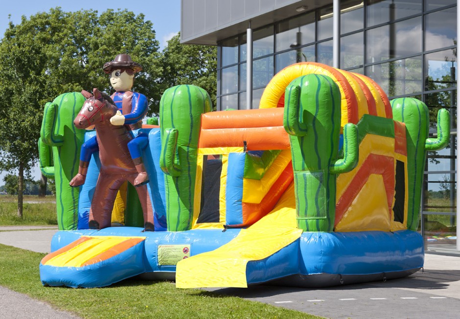 Parfait pour un anniversaire ou une fête sur le thème de votre choix. Les enfants pourront s’amuser tout au long de votre évènement ou de votre manifestation grâce à notre location château gonflable multiplay Cow-Boy.